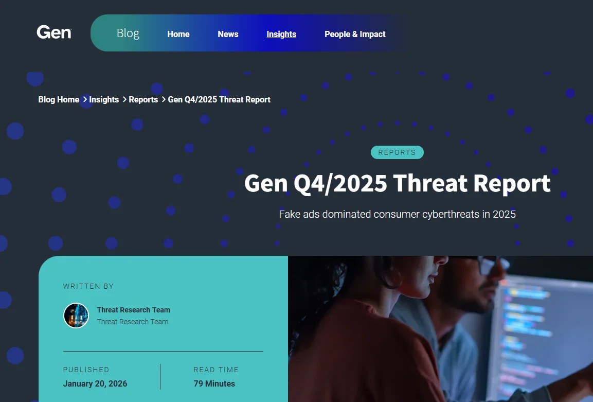| Laut dem Gen Q4 2025 Threat Report nutzen Angriffe zunehmend das Vertrauen und routinemäßige digitale Verhaltensweisen aus statt technischer Schwachstellen. | Attacks increasingly exploit trust and routine digital behavior rather than technical vulnerabilities, according to the Gen Q4 2025 Threat Report. |