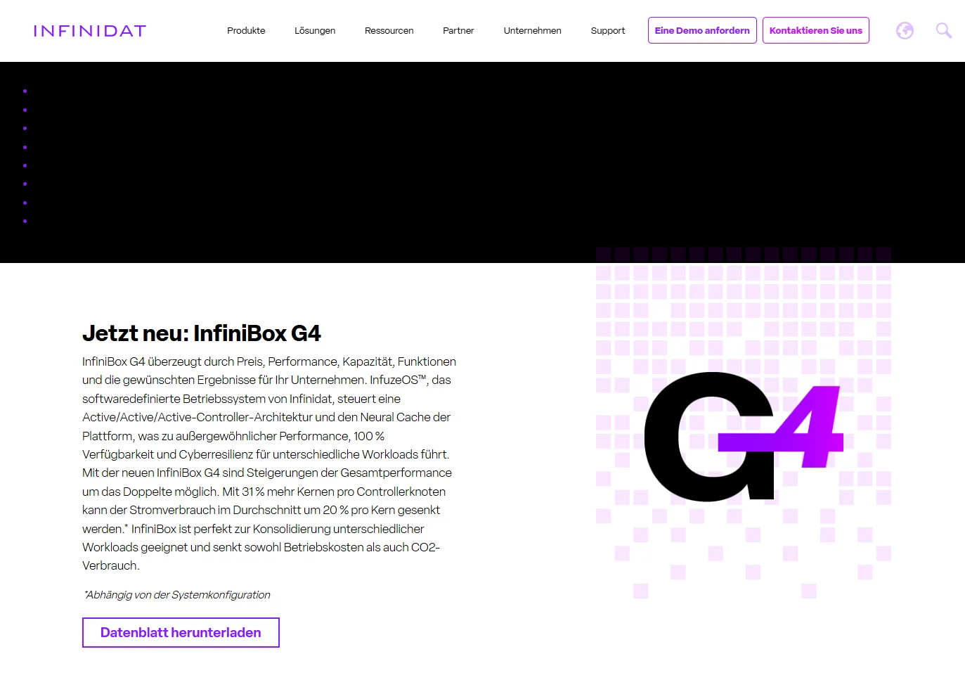 The enhanced G4 family delivers the unparalleled performance, availability, and cybersecurity guarantees that Infinidat is known for. All Infinidat solutions are based on the industry-recognized InfuzeOS and provide a seamless operational control experience—regardless of the system used and whether on-premises or in the cloud. What analysts are saying: Ashish Nadkarni, Group Vice President & General Manager, Worldwide Infrastructure at IDC: „With the latest enhancements to the InfiniBox G4 family, Infinidat delivers everything you could want: higher efficiency, green IT, a lower entry price, more flexible scaling options, greater capacity in a more compact form factor, and expanded native protocol support with the addition of Object/S3. Back in 2024, Infinidat delivered an extremely innovative enterprise storage solution with the InfiniBox G4 that set new standards. The further development of the G4 in 2025 extends the reach of the G4 beyond existing customers to new enterprise customers. Infinidat makes it easier for large enterprises to deploy the InfiniBox G4 for a wider range of applications and workloads. The G4 is gaining momentum.“ Dave Vellante, Chief Analyst, theCUBE Research: „The expansion of Infinidat’s InfiniBox G4 solution reflects a broader shift in the market. Enterprises are demanding enterprise-class availability, cyber resilience, and performance at lower entry prices. By lowering capacity thresholds and increasing flexibility and scalability, Infinidat is now positioning itself not only in the traditional high-end storage segment, but also in a broader range of enterprise use cases. Given the increasing competition in the storage market, the improvements signal a focus on customer benefits in terms of resilience, efficiency, and choice.“ Opinions of channel partners: Neal Callahan, COO, Sycomp: „Our enterprise customers depend on scalable, sustainable, and highly efficient storage solutions. We are very pleased that Infinidat is continuing to expand and innovate the InfiniBox G4 enterprise storage platform to support our mutual enterprise customers with powerful technical and business advantages. The platform offers high-end storage in a very compact form factor with excellent performance at a lower entry price.“ Kurt Schnieders, President & Chief Strategy Officer, Advizex: „Infinidat’s new enhancements are attractive because they enable non-disruptive upgrades. This means we can seamlessly improve our enterprise customers‘ storage infrastructure while their applications and workloads continue to run at full capacity. In addition, Infinidat offers a double advantage: on the one hand, the energy efficiency of data centers and storage systems is further dramatically improved, and on the other hand, green IT is enabled. This not only brings significant benefits for the environment, but also significant economic benefits for our customers.“ José Pelaez, Head of Alliances, IBIO & LATAM, NTT DATA: „At NTT DATA, we are very impressed by the innovative strength and focus of Infinidat, the provider of InfiniBox G4 storage solutions. Through our close partnership, we offer enterprise customers the combined strength of NTT DATA’s global expertise and Infinidat’s cutting-edge technology. Infinidat is continuously expanding its offering with new features, strengthening the trust that customers place in both companies. The InfiniBox G4 is a high-performance enterprise storage system that delivers unmatched performance, flexibility, and reliability. Together, NTT DATA and Infinidat enable our customers to drive their digital transformation with confidence.“ Customer comment: John White, COO, US Signal: „Infinidat continues to be an important business partner for us. The InfiniBox G4 system offers 100 percent availability and peak performance while reducing space requirements by 31 percent. This simplifies our planning for future growth and broader deployment of their solutions at US Signal. The 28 percent increase in capacity with reduced space requirements is a significant advantage and supports our commitment to a sustainable, environmentally friendly IT infrastructure. The sevenfold improvement in energy efficiency of the G4 F24ST compared to the next best competitor underscores Infinidat’s leadership in this area.“ |