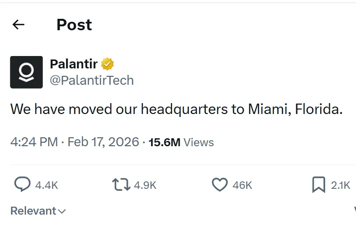 In a single sentence on X (formerly Twitter), Palantir confirmed the move: ‚We have moved our headquarters to Miami, Florida.‘ The company has so far failed to respond to a request from the American stock market portal Seeking Alpha for the reasons behind the move.