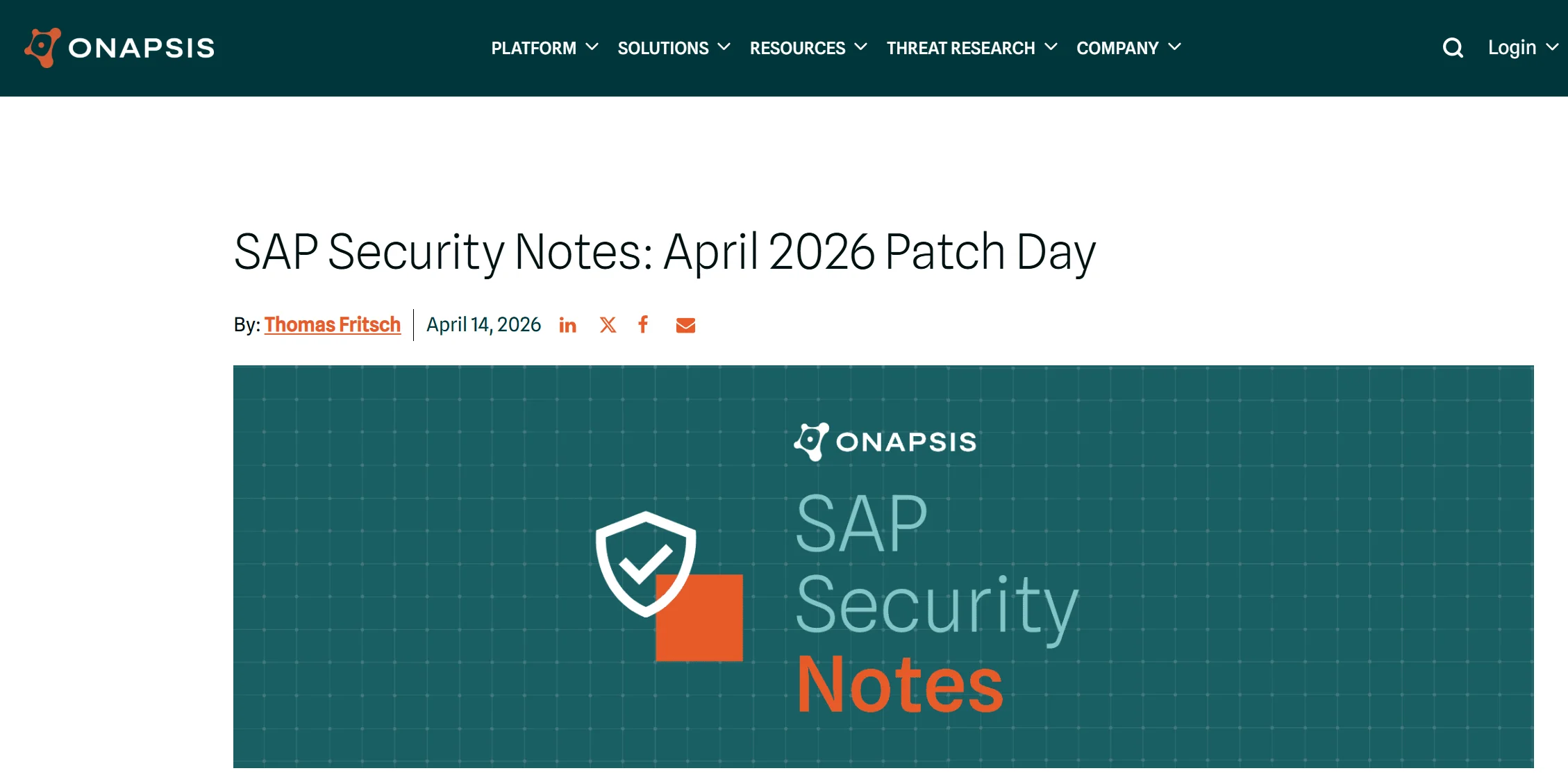 SAP hat im Rahmen des April 2026 Patch Day 22 neue und aktualisierte Security Notes veröffentlicht. Die Freigabe enthält eine HotNews-Note mit CVSS-Wert 9.9 und zwei High-Priority-Notes.