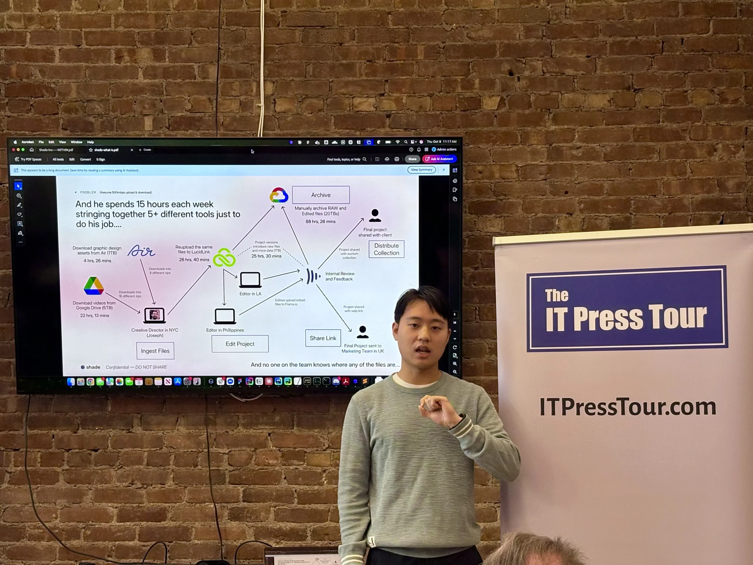 In einer Ära, in der Creative-Teams gleichzeitig mehr vernetzt und fragmentierter sind als je zuvor, geht ein New Yorker Startup eine der größten Herausforderungen der Branche an: Wie man riesige Mediadateien effizient über verteilte Teams hinweg verwalten, teilen und kollaborieren kann. Das ist die Geschichte, die Brandon Fan, CEO von Shade, auf der IT-Press-Tour erzählte.