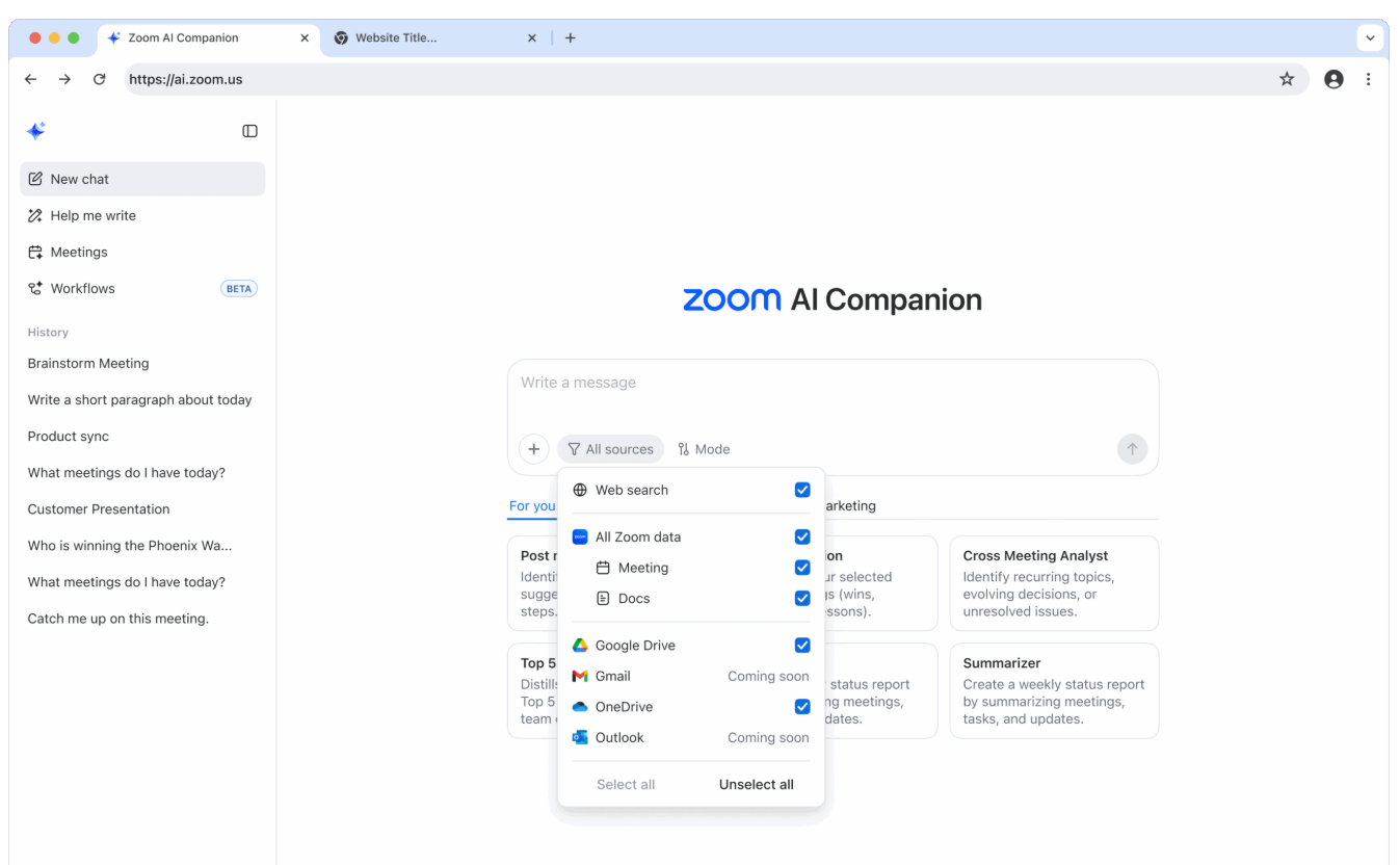 | Zoom veröffentlicht AI Companion 3.0 mit einer Webschnittstelle, persönlicher Workflow-Automatisierung und einer eigenständigen Option für 10 US-Dollar pro Monat, für die keine kostenpflichtige Zoom-Lizenz erforderlich ist. | Zoom releases AI Companion 3.0 featuring a web interface, personal workflow automation, and a $10 monthly standalone option that doesn’t require a paid Zoom license. |